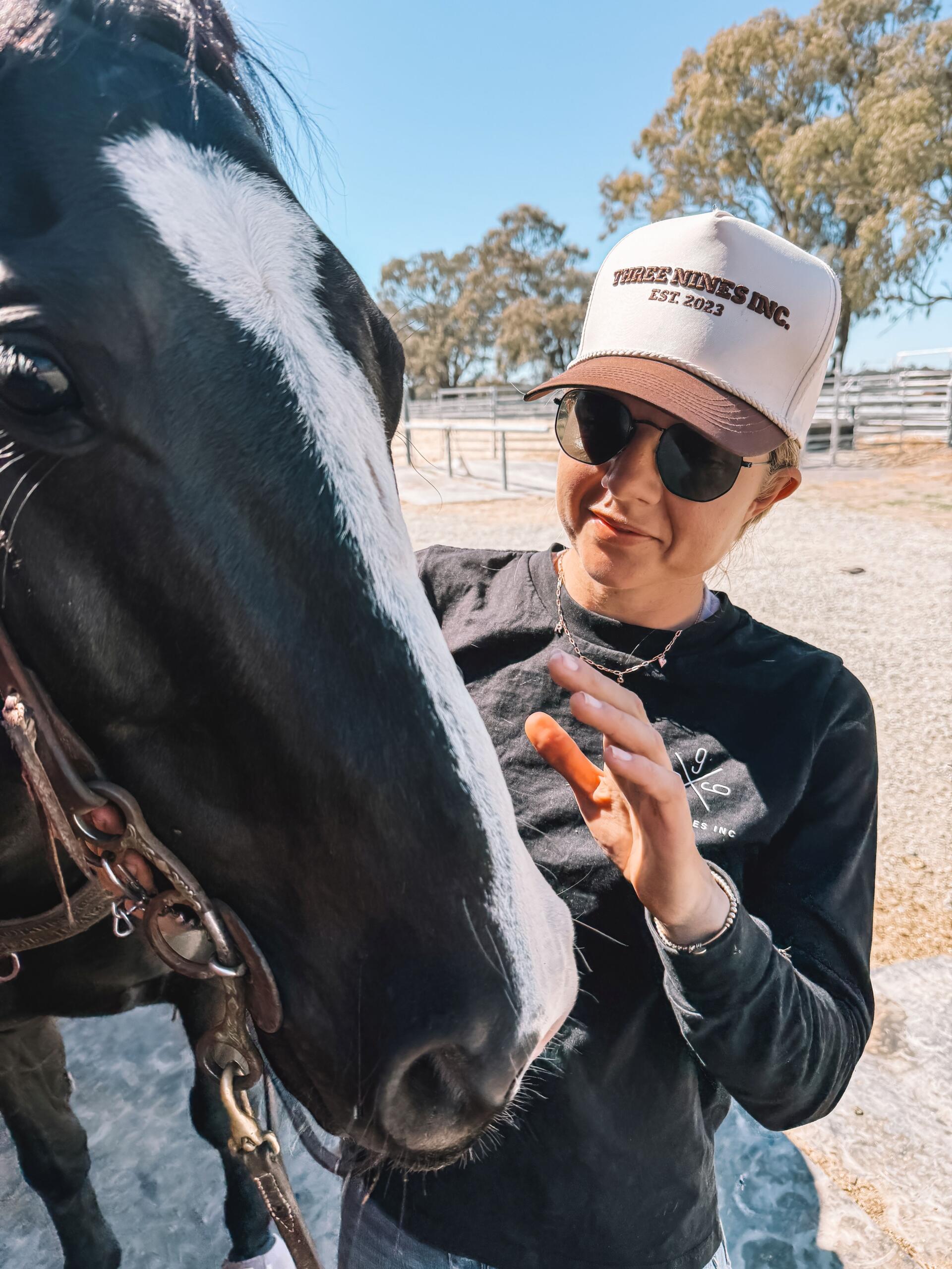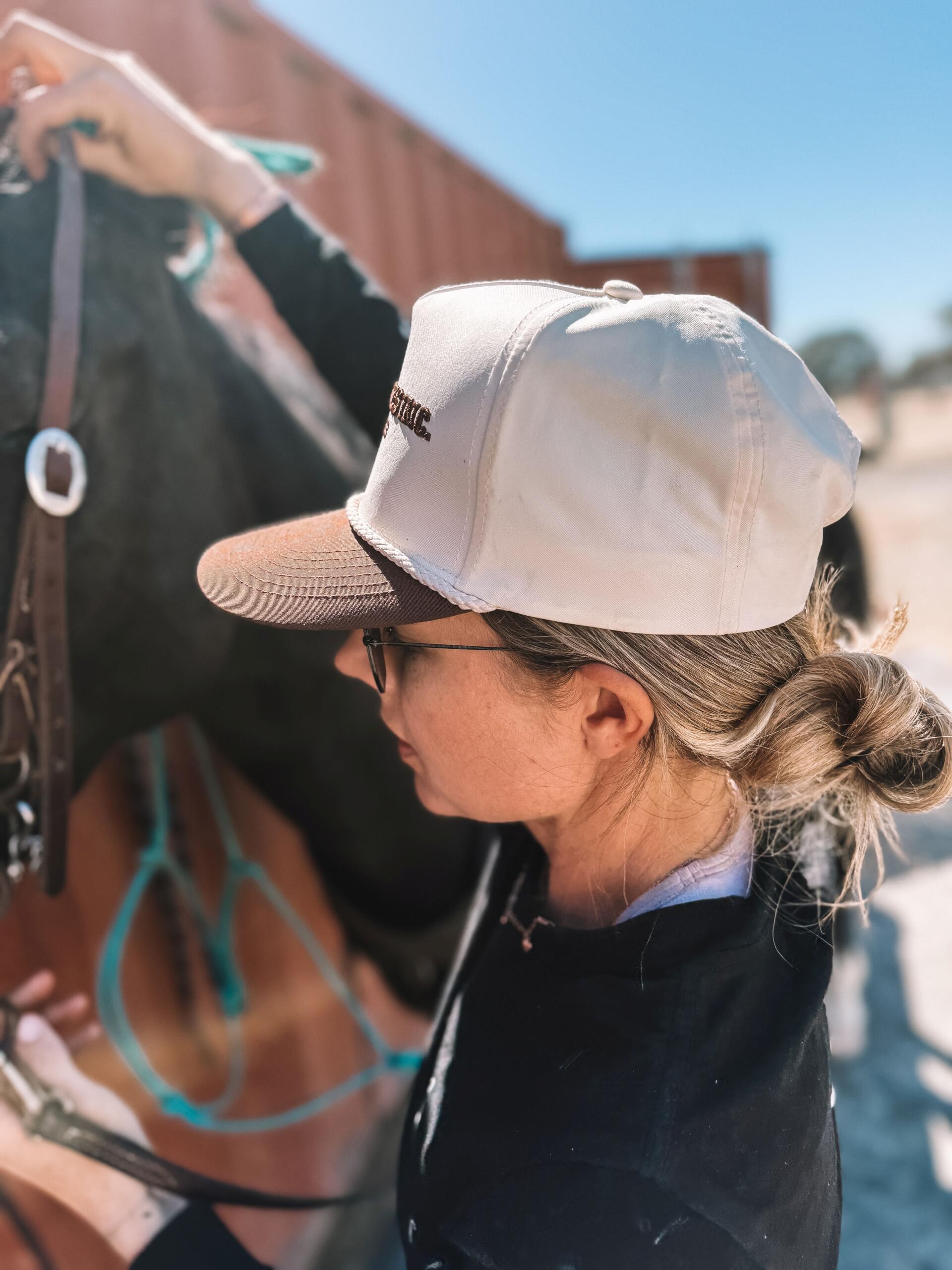 Three Nines Inc. New western style, solid back trucker style cap with rope